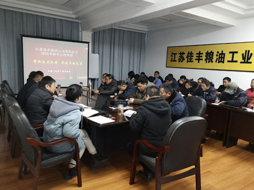 2019年1月14日,在佳丰公司总部召开了2019年新年工作部署会议。出席会议的有佳丰公司董事长陈总、董事会秘书王秘书及各个分公司、分管部门主要领导出席本次会议。