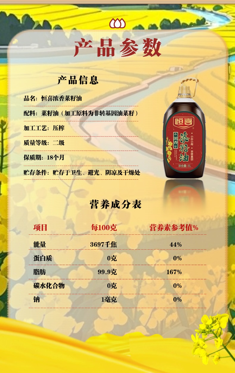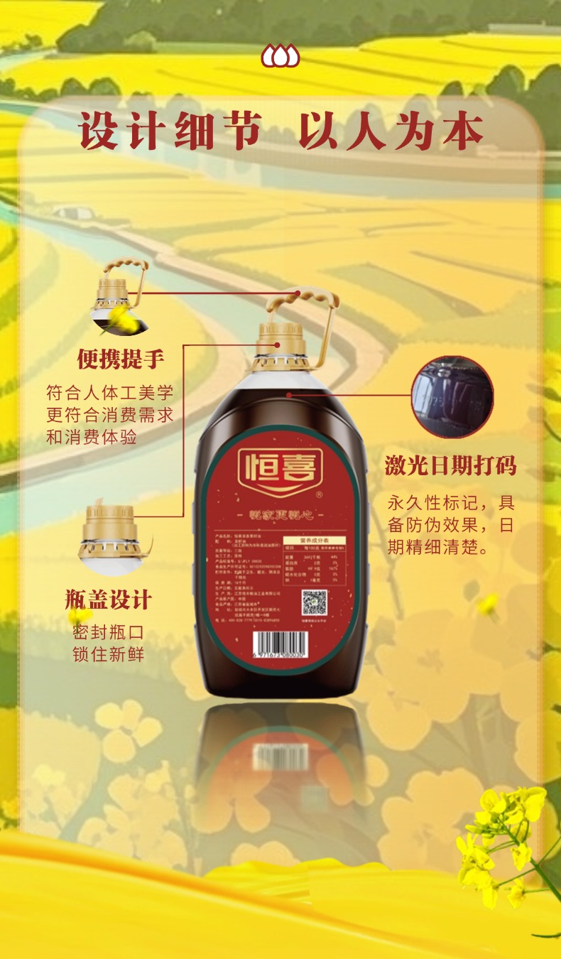 恒喜100%小炒小榨 还原菜油浓醇香 5L浓香菜籽油